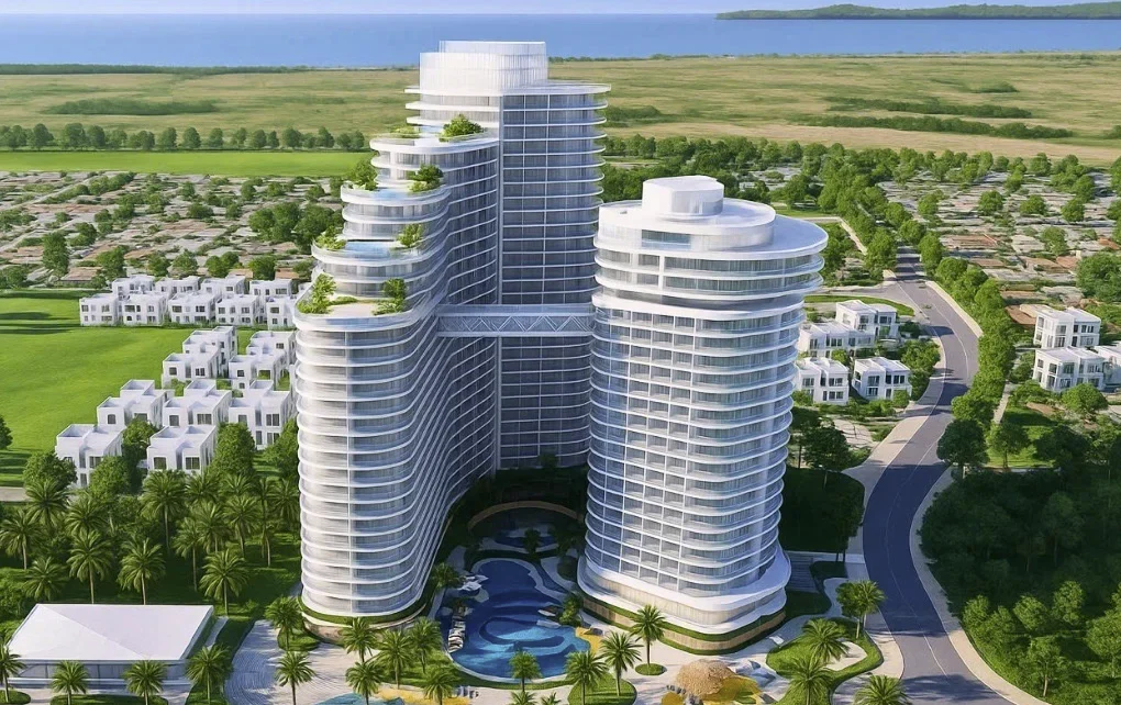 - Kiến Trúc Hiện Đại, Tối Ưu Tầm Nhìn: Dự án được thiết kế với 2 tòa tháp cao tầng mang phong cách kiến trúc hiện đại, sang trọng. Mật độ xây dựng được tính toán kỹ lưỡng để tối đa hóa không gian xanh và đảm bảo hầu hết các căn hộ đều có tầm nhìn hướng biển. Ban công rộng, cửa kính lớn từ sàn đến trần sẽ là điểm nhấn giúp không gian bên trong luôn ngập tràn ánh sáng tự nhiên và gió biển trong lành.